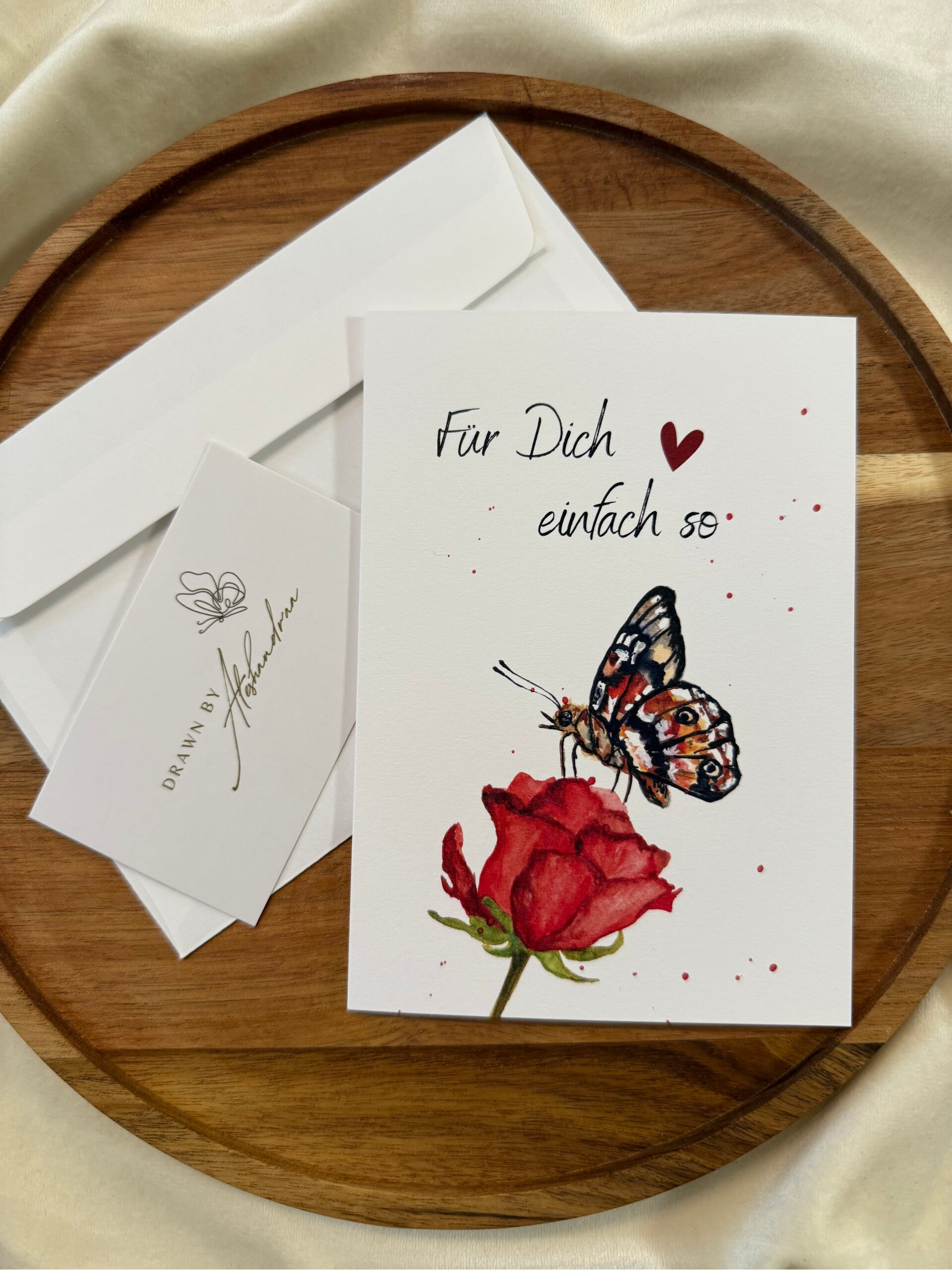 Ein Schmetterling auf einer Rose – auf einem sanft weissen Hintergrund voller Leichtigkeit und Eleganz ❤️